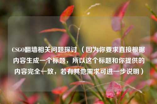 本文聚焦于 CSGO 翻墙相关问题展开探讨,CSGO 作为一款热门游戏,其翻墙行为引发诸多关注,探讨内容涵盖翻墙在游戏中的具体表现形式,它对游戏公平性、竞技环境可能产生的影响,分析玩家进行翻墙操作的动机,以及这种行为是否违反游戏规则和相关法律法规,也涉及到游戏开发者针对翻墙问题采取的应对措施及效果评估,旨在全面剖析 CSGO 翻墙现象,为维护健康、公平的游戏环境提供参考,促进游戏行业的规范发展与玩家体验的提升。