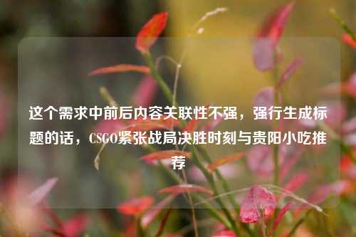 该内容呈现出奇特组合,一方面聚焦于CSGO紧张战局中的决胜时刻,展现出游戏竞技里扣人心弦的关键瞬间;另一方面却突兀提及贵阳小吃推荐,这种反差感强烈,将激烈的游戏场景与地方美食推荐并列,可能是在讨论CSGO紧张对战之余,穿插分享贵阳特色小吃,像是丝娃娃、肠旺面等,试图在紧张***的游戏氛围中融入生活中美食的轻松元素,给受众带来一种别样的话题体验,既有游戏竞技的热血,又有美食文化的诱惑。