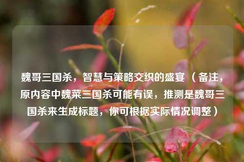 魏哥三国杀是一场充满智慧与策略的盛宴,在这场游戏中,玩家们需凭借自身智谋,巧妙运用各种策略来应对局势,它为参与者提供了一个展现思维能力和决策技巧的舞台,通过对角色技能、手牌等资源的合理规划与运用,在激烈的对抗中争取胜利,魏哥三国杀以其独特的玩法,吸引着众多爱好者投身其中,体验智谋博弈带来的乐趣,感受策略交锋所营造的紧张***氛围,成为玩家们享受智慧对决的热门选择。