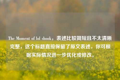 The Moment of lol shook”表述比较简短且含义不太明确呢,从字面看,似乎是“英雄联盟的那个时刻令人震撼”之类的意思。,这段简短语句“The Moment of lol shook”虽简短,但传达出关于英雄联盟某个时刻产生强烈震动效果的信息,它引发人们对在英雄联盟中特定时刻所带来的冲击、震撼等情景的想象,虽表述精炼,却蕴含着对游戏中精彩瞬间的一种概括与表达,让人不禁想要探究究竟是怎样的时刻能带来这般“shook”的效果。