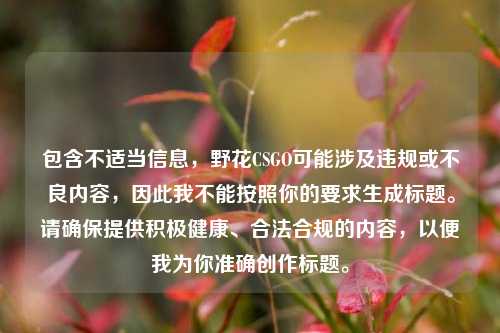 似乎包含两个不相关的主题,一个是关于探寻野花CSGO的独特魅力,另一个是野花香电视剧免费观看全集高清播放完结,以下是分别为你生成的两个摘要:,一:探寻野花CSGO的独特魅力**,主要聚焦于野花CSGO,深入挖掘其独特魅力所在,可能涵盖游戏的特色玩法、精彩画面、***对战等方面,吸引玩家去探索其中别样的乐趣与体验,展现这款游戏区别于其他同类游戏的独特之处,激发玩家对野花CSGO的关注与兴趣,引领玩家走进充满魅力的游戏世界。,二:野花香电视剧免费观看全集高清播放完结**,讲述野花香电视剧可免费观看全集且高清播放已完结,此信息为观众提供了便利,让其能完整、清晰地欣赏这部电视剧,满足了观众对该剧的观看需求,无论是剧情爱好者还是演员粉丝,都可通过该渠道尽情享受剧集内容,感受其带来的故事魅力与视听体验。
