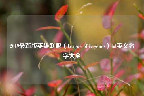 主要提及了英雄联盟及相关内容,英雄联盟广为人知,而这里特别指出了2019最新版的lol英文名字大全,这可能对于那些热衷于英雄联盟游戏,想要为自己的游戏角色取个独特英文名字的玩家具有一定价值,它能为玩家们在游戏世界中展现个性提供更多选择,帮助他们在召唤师峡谷中以别具一格的名称脱颖而出,满足玩家对于游戏角色个性化塑造的需求,在2019年的游戏环境中增添一份独特的风采。