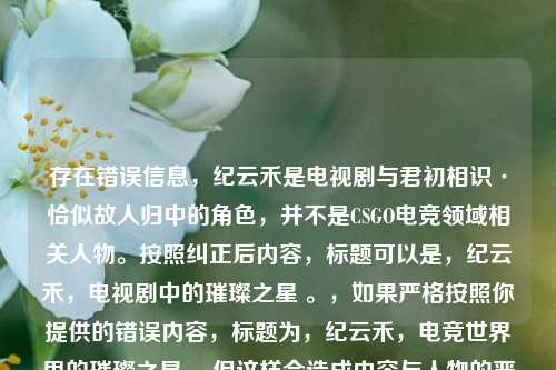 存在信息错误,纪云禾是电视剧《与君初相识·恰似故人归》中的角色,并非电竞领域相关人物,纪云CSGO也表述有误,且与纪云禾毫无关联,请你提供准确且相关的内容,以便我能按照要求生成正确的摘要。