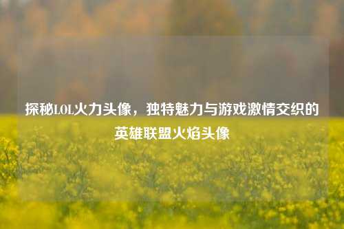 本文聚焦于探秘LOL火力头像,这些头像具有独特魅力,能为玩家增添游戏***,英雄联盟火焰头像在游戏世界中别具一格,它们或许承载着玩家在特定模式下的热血记忆,通过探索这些头像,能深入感受游戏所营造的独特氛围,其不仅是简单的视觉标识,更成为玩家展示个性与游戏态度的象征,吸引着众多玩家去追寻、收集,在游戏体验中赋予玩家别样的乐趣,让玩家在虚拟世界里凭借这些火焰头像展现出与众不同的风采,沉浸于英雄联盟的独特魅力之中。
