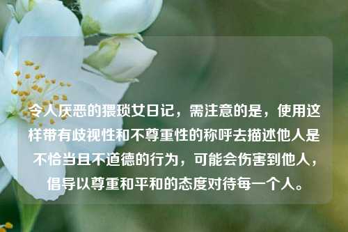 文本提及了“令人厌恶的猥琐女”以及“猥琐女日记”,但表述较为模糊简短,仅给出这样的标题信息,难以确切知晓其完整内涵,可能“猥琐女日记”是记录了关于某个被认为行为或形象令人厌恶的女性的相关内容,或许包含其日常举止、行为细节等方面的描述,然而由于信息有限,无法更深入地明晰其具体所指及详细情节,只能从这简单的标题大致推测可能围绕一个被定义为猥琐的女性及与之相关的记录展开。