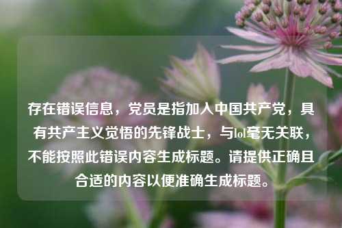 存在错误信息,“lol党员”这种表述与真正的党员概念毫无关联且不恰当,党员是指加入中国 的成员,他们是中国工人阶级的有共产主义觉悟的先锋战士,必须全心全意为人民服务,不惜牺牲个人的一切,为实现共产主义奋斗终身,党员要坚定理想信念,遵守党的纪律,践行党的宗旨,在工作、学习和社会生活中发挥先锋模范作用,为党和人民的事业不懈努力,为国家的发展、民族的复兴贡献力量,我们应严肃对待党员这一光荣身份,避免使用错误或不恰当的表述。