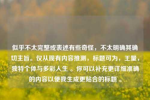 王量,就这样以自己独特的方式诠释着生活的意义,书写着属于自己的精彩人生篇章,不断地在人生的舞台上绽放出属于自己的光芒。