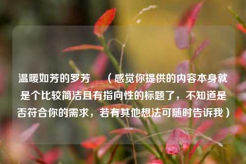 本文围绕“温暖如芳的罗芳罗芳珪”展开,罗芳珪有着如芳般温暖的特质,他的生平经历或许充满故事,他可能在人际交往中散发着温暖的气息,给身边人带来慰藉与关怀,也许在某个特定领域有着独特的贡献,凭借自身的温暖品质感染他人,激励众人,其名字所蕴含的“罗芳”二字,仿佛象征着他如芬芳般美好的形象,无论是在生活点滴还是在重要时刻,都以温暖之态展现独特魅力,令人印象深刻,值得进一步探寻他背后更多温暖动人的篇章。