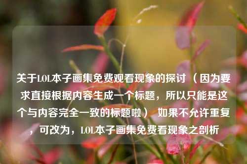 在 文化的浪潮中,“LOL本子画集免费看”这一话题逐渐引发了众多玩家和爱好者的关注。