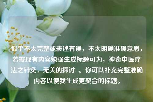 似乎不太完整且表述模糊,请补充完整准确的关于针灸的具体信息,比如针灸的原理、作用、治疗的病症、独特优势等相关内容,以便我能按照要求为你生成规范准确的摘要,仅“神奇的中医疗法—针灸中医疗法针灸无关的是”这样的表述实在难以理解其确切主旨并进行有效摘要创作。
