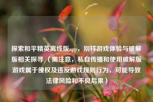 本文旨在探索和平精英离线版app,提及了其能带来别样的游戏体验,文中还特别指出是和平精英离线版破解版,这种破解版可能试图突破常规游戏限制,让玩家在离线状态下也能畅玩和平精英,需要注意的是,私自使用破解版游戏可能涉及侵权行为,违反游戏相关规定和法律法规,在享受游戏乐趣的同时,应遵守合法合规原则,选择通过正规渠道体验游戏,以维护健康的游戏环境和自身权益。