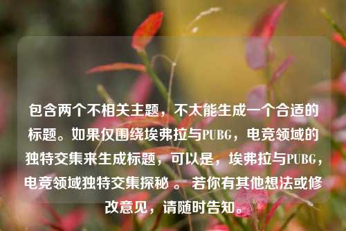 在电竞的广阔世界里,不同领域的元素相互碰撞融合,创造出了许多令人瞩目的故事,埃弗拉与PUBG之间的联系便是一个值得探讨的话题。