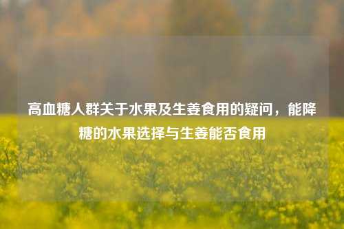 主要探讨了两个关于饮食与血糖的问题,一是询问吃什么水果能降糖,指出有一些水果是不错的选择,但未具体提及水果种类,二是关注高血糖的人能否吃生姜,围绕这两个方面展开思考,对于高血糖人群来说,了解适宜的水果有助于控制血糖水平,而生姜的食用与否也关乎血糖管理,这些问题对于指导高血糖患者合理饮食、维持血糖稳定具有重要意义,有待进一步明确具体答案以帮助他们科学安排饮食。