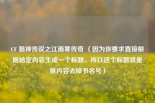 《CF狙神传说之江雨寒传奇》聚焦于江雨寒在CF世界中的传奇经历,江雨寒凭借超凡的狙击天赋与不懈努力,成为令人瞩目的狙神,他在战场上一次次精准出击,用手中的狙击枪书写着辉煌战绩,其传奇故事充满热血与***,展现了他在CF赛场上面对强敌时的英勇无畏,以及在激烈对抗中不断突破自我的历程,江雨寒的传奇不仅在于高超的狙击技艺,更在于他所散发的拼搏精神,激励着无数CF爱好者,成为CF领域一段广为流传的佳话。