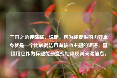 《三国之杀神降临》讲述了一个独特的三国故事,主角在三国乱世中以杀神之姿降临,凭借非凡的武力和智慧,搅动风云,他于战场上冲锋陷阵,杀敌无数,其勇猛令敌军胆寒,在复杂的局势里,主角周旋各方势力之间,不仅改变着战争的走向,更影响着历史的进程,他的每一次行动都引发连锁反应,在三国这个英雄辈出的时代,书写属于自己的传奇篇章,见证着无数惊心动魄的战斗与权谋博弈,展现出一段与众不同的三国传奇历程。