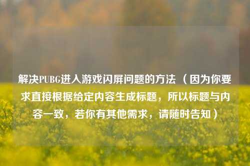 主要围绕解决PUBG进入游戏闪屏问题展开,阐述了存在这一问题的现象,即玩家在启动PUBG游戏时界面出现闪屏状况,重点在于探讨相关解决 *** ,包括可能对游戏设置进行调整,如画面分辨率、刷新率设置等;检查显卡驱动是否需要更新、电脑整体性能是否满足游戏运行要求等,通过一系列排查与处理措施,以帮助玩家有效解决PUBG进入游戏闪屏问题,确保游戏能够流畅启动与运行,提升玩家的游戏体验。